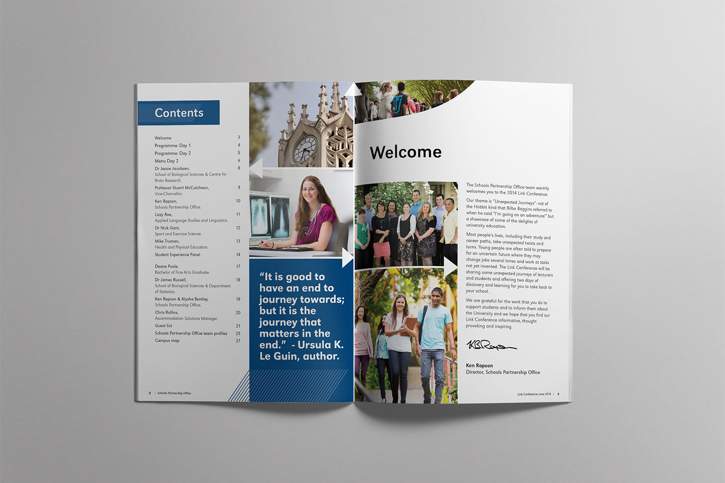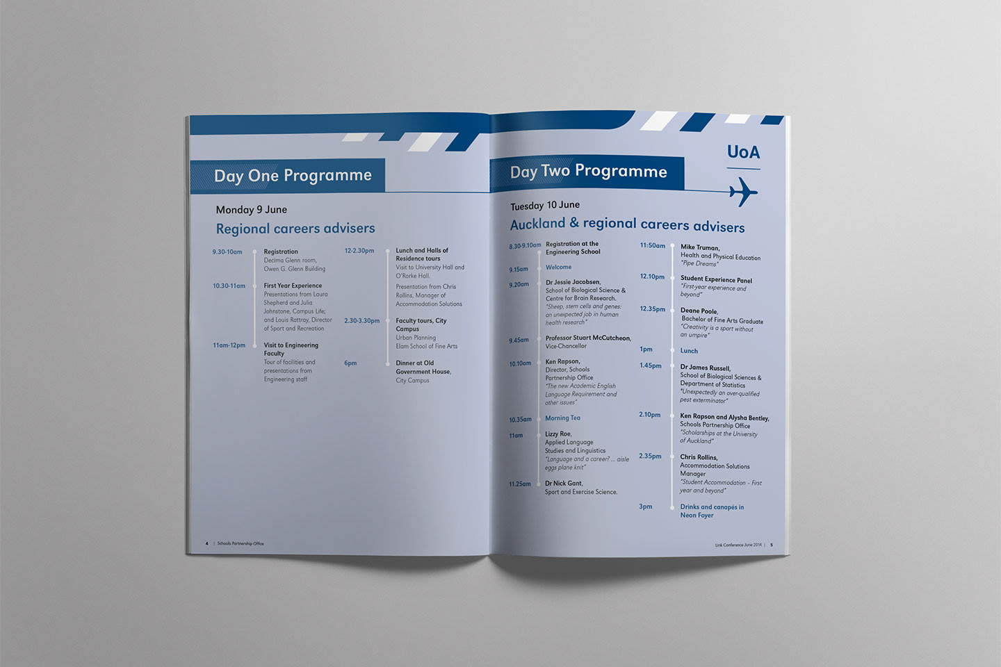 Design event collateral for the University of Auckland’s student advisors office, for their annual LINK conference event based on the theme unexpected journeys, where school advisers attend from all around NZ.